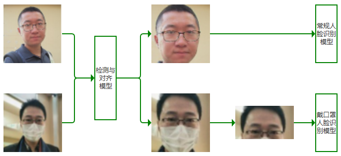 | 带口罩人脸识别 | ResNet-50 | 34ms | 150ms | 512 |