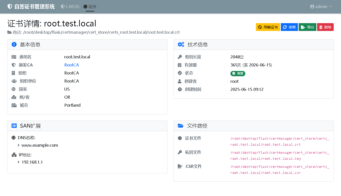 一个基于Flask的Web应用程序用于管理自签名证书颁发机构(CA)和证书。 全部代码由DeepSeek生成